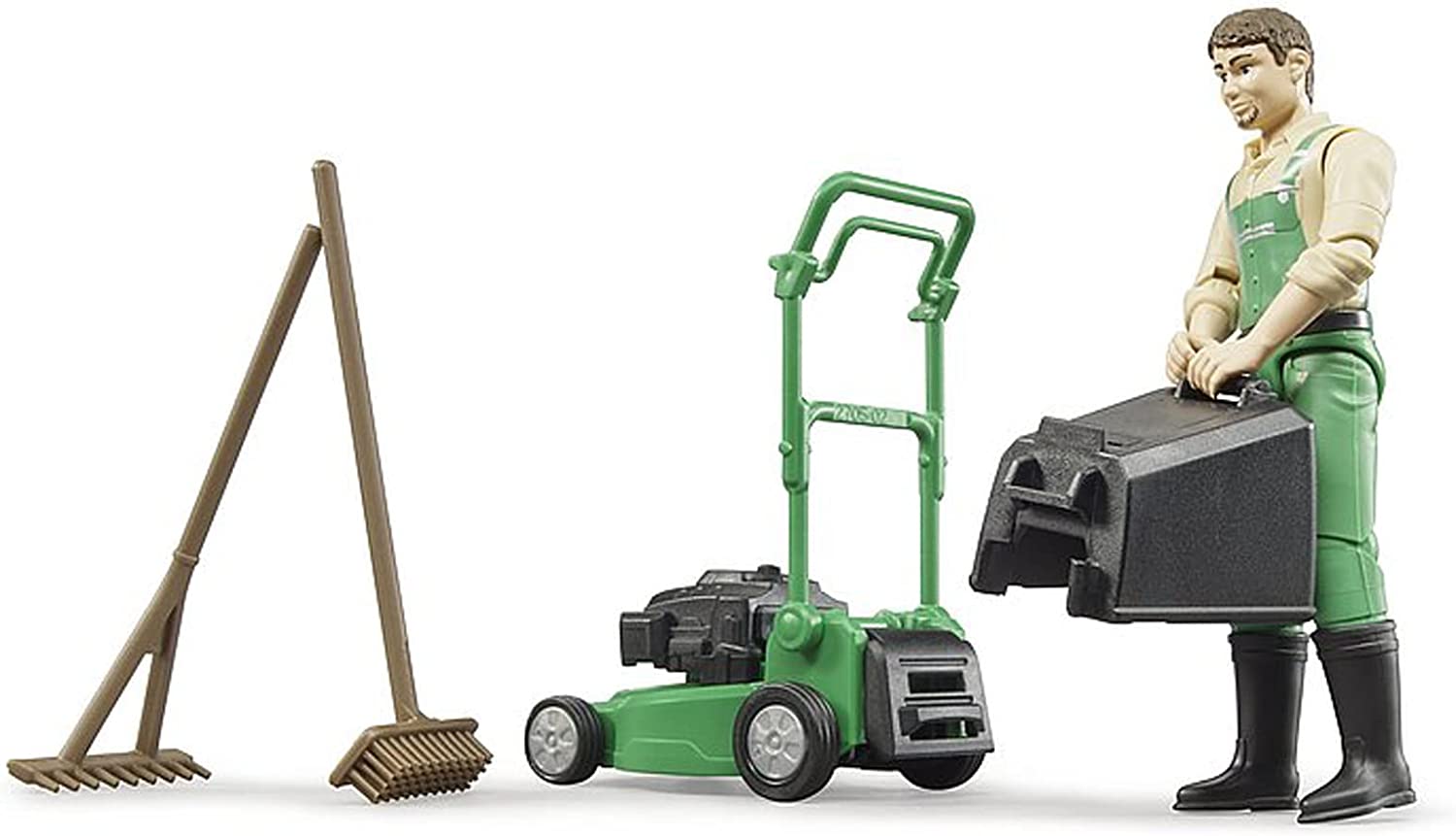Bruder Gärtner mit Rasenmäher und Gartengeräten Fertigmodell Landwirtschafts Modell