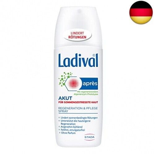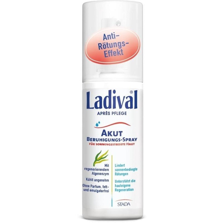 Das Ladival Akut Apres Beruhigungs-Spray wurde speziell zur Regeneration und Pflege sonnengestresster Haut entwickelt. Das fett- und emulgatorfreie Spray enthält Photolyase ein Enzym aus der Blaualge - welches die Regeneration der Haut unterstützt. Das angenehm kühlende Spray gibt der Haut Feuchtigkeit zurück und lindert sonnenbedingte Spannungsgefühle und Rötungen.