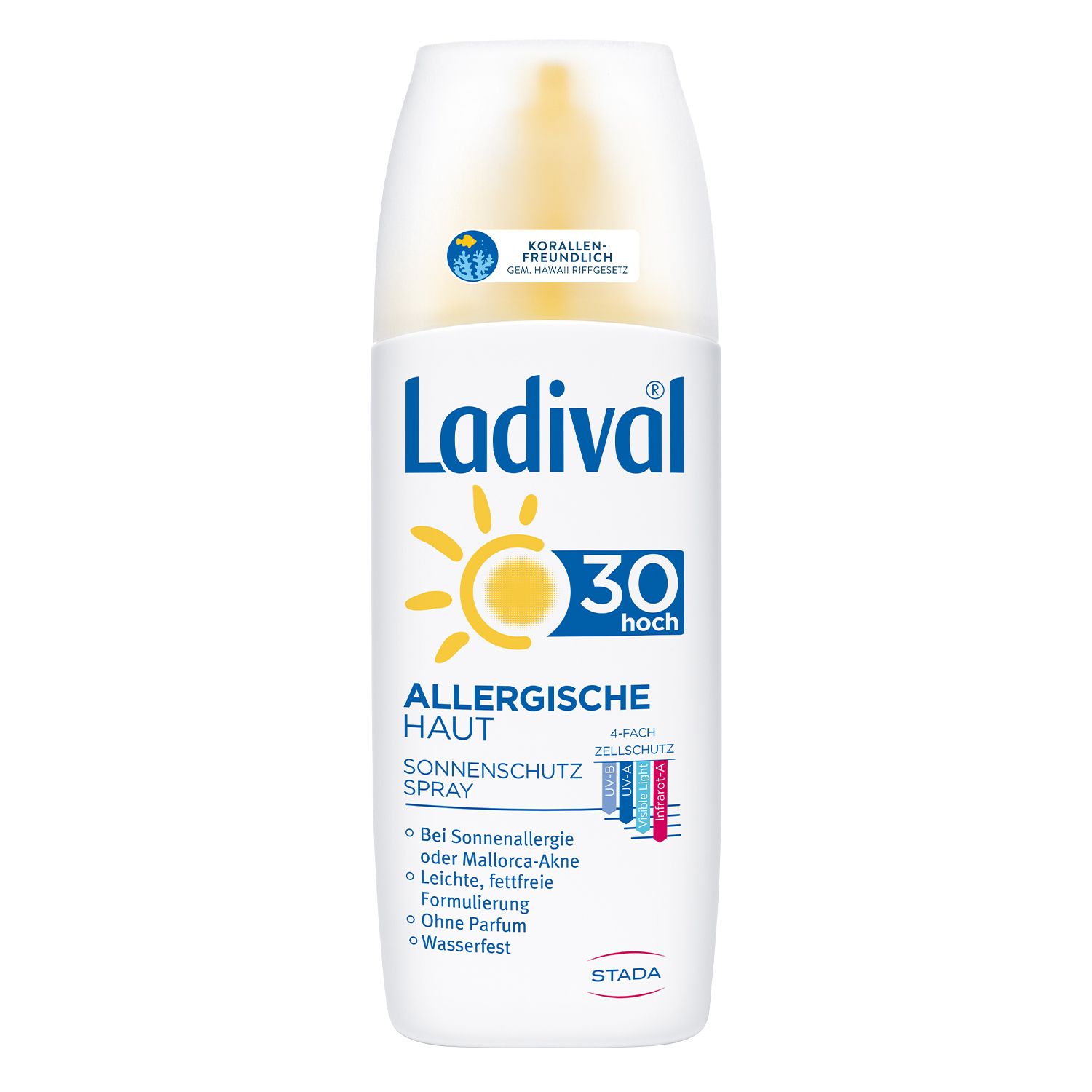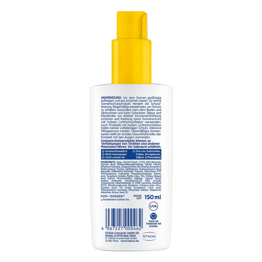 Mit dem einzigartigen 4-fach Zellschutz schützt Ladival für allergische Haut vor Sonnenbrand, sonnenbedingten Hautschäden, sichtbarem Licht und vorzeitiger, sonnenbedingter Hautalterung. Der extra wasserfeste Sonnenschutz besteht sofort nach der Anwendung.