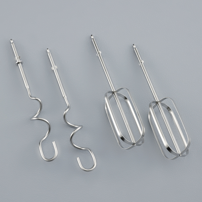 Hochwertige Materialien – Mit dem hochwertigen Kunststoffgehäuse und den Rührbesen und Knethaken aus Edelstahl überzeugt der Mixer durch hohe Qualität.