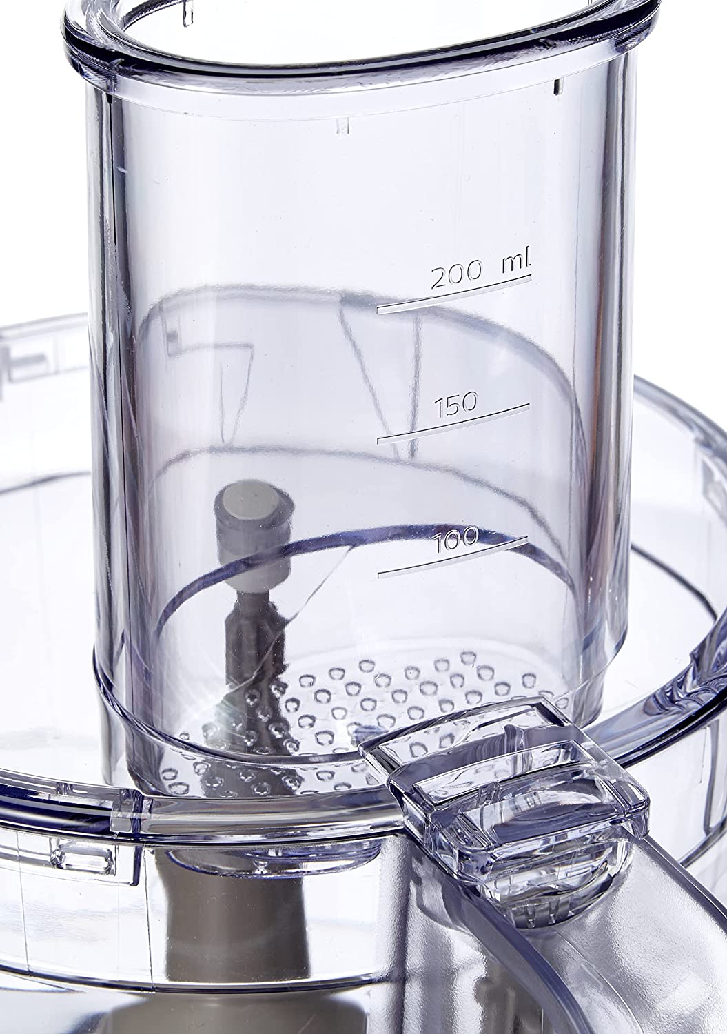 Vielfältiges Zubehör für 16 Funktionen: 2. 1L Behälter, 2-in-1 Schneidescheibe, Emulgierwerkzeug, Knethaken, S-Messer (spülmaschinenfest)