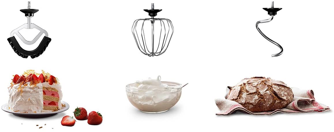Hervorragend verarbeitete Teige dank extrastarkem 1500 W Motor und Smart dough sensor, Langlebigkeit durch Vollmetall Gehäuse und Flexibilität durch perfekt abgestimmtes Profi Zubehör