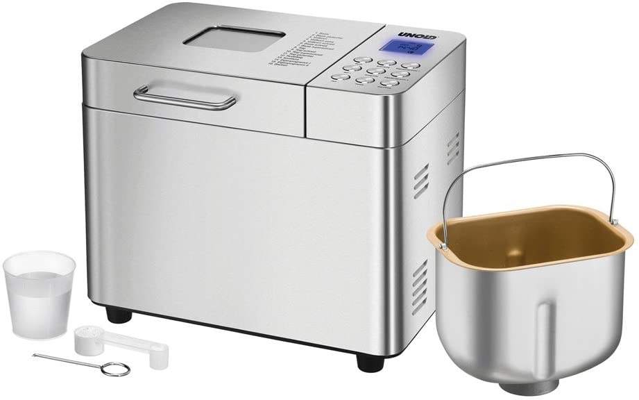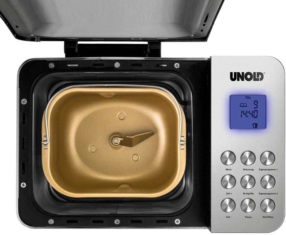 Der schicke BACKMEISTER von UNOLD mit Edelstahlgehäuse ist Garant für gesunde Mahlzeiten aus eigener Herstellung. Denn darin kann man nicht nur Brot backen. Jetzt lässt sich mit dem BACKMEISTER auch Marmelade kochen und Nudelteig herstellen. Und zwar exakt für jeden Geschmack – ob Kürbiskernbrot besonderes cross (Bräunungsgrad und Brotgröße wählbar), ob Marmelade mit den Früchten der Saison oder Pasta mit speziellen Gewürzen. Durch 16 Programme für Brotteig bis 1.000 g, für Marmelade/Konfitüre und für Nudelteig wird die Zubereitung in der keramisch beschichteten Backform in der Tat meisterhaft. Alle Programme sind auch für glutenfreies Brot geeignet. Zahlreiche Funktionen machen die Herstellung von Brot, Marmelade und Nudeln kinderleicht: Warmhaltefunktion bis zu 60 Minuten, LCD-Display, großes Sichtfenster und Pausenfunktion. Messbecher, Hakenspieß und leckere Rezepten sind inklusive. Multi Media