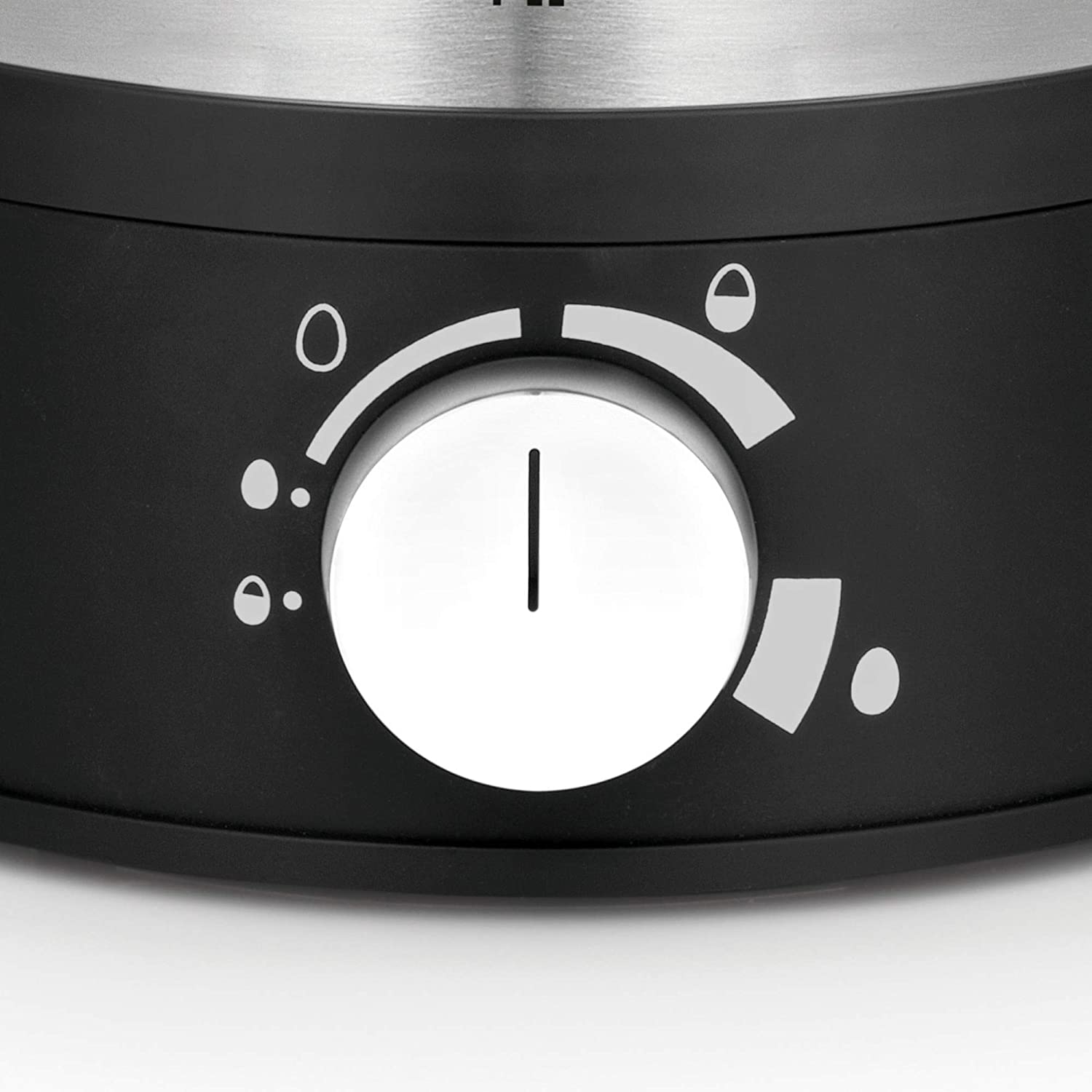 PRODUKTBESCHREIBUNGEN PRODUKTBESCHREIBUNG Seidenmatt glänzende Oberfl ächen in Cromargan abgesetzt mit schwarzen Konturen und klare Formen — das zeichnet die Stelio Frühstücksserie aus. Die im Design aufeinander abgestimmten Produkte decken vielfältige Anwendungen für ein abwechslungsreiches Frühstück ab. gutehend aus Filterkaffeemaschinen, Kaffeemühle, Wasserkochern und Toaster sowie Standmixer, Eierkocher und Citruspresse ist dieses Set der ideale Begleiter für den Start in den Tag. Der Stelio Eierkocher mit einer Haube aus gebürstetem Cromargan und einer Edelstahlheizschale gart bis zu 7 Eier gleichzeitig. Die Kochzeitelektronik ermöglicht hierbei das gleichzeitige, punktgenaue Zubereiten mit den Härtegraden weich, mittel und hart. Da der Eier Kocher über eine Fortkochstufen-Funktion verfügt, können auch mehrere Eier mit unterschiedlichen Kärtegraden in einem Kochprozess gekocht werden. Hierzu befüllt man den Kocher mit allen Eiern und lässt diese wie gewohnt auf dem niedrigsten Härtegrad kochen. Sobald der Härtegrad erreicht ist, informiert der Eierkocher mit einem Signalton. Die Anzahl der weichen Eier werden entnommen und der Regler auf die gewünschte Fortkochstufe gestellt. So kochen die restlichen Eier weiter bis diese ihren gewünschten Härtegrad erreicht haben. Der separate Ein-/ Ausschalter, die Kochzeitelektronik, die Fortkochstufe, ein Signalton am Ende der Garzeit sowie die Kabelaufwicklung machen den Stelio Eierkocher zu einem unverzichtbaren Küchenhelfer. PRODUKTBESCHREIBUNG DES HERSTELLERS - RECHTLICHE HINWEISE - SET ENTHÄLT: 1x Eierkocher aus Cromargan Edelstahl matt (17,5 x 20 x 15 cm, 350 Watt, Kabellänge 94 cm) mit Kunststoff-Halter und Edelstahlheizplatte, 1x Messbecher mit Eipick Weitere Informationen