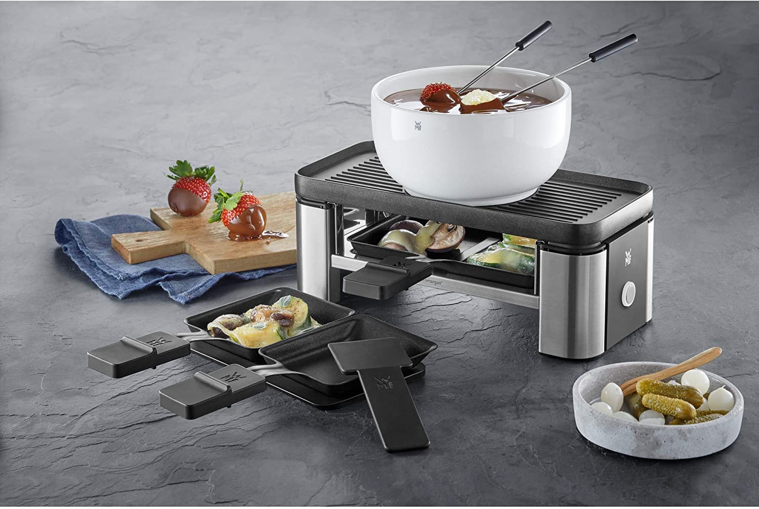 Weiterführende Links zu "WMF Küchenminis Raclette 2 Personen, Grill, 3 Pfännchen, Schieber und Keramikschüssel für Schokolade"