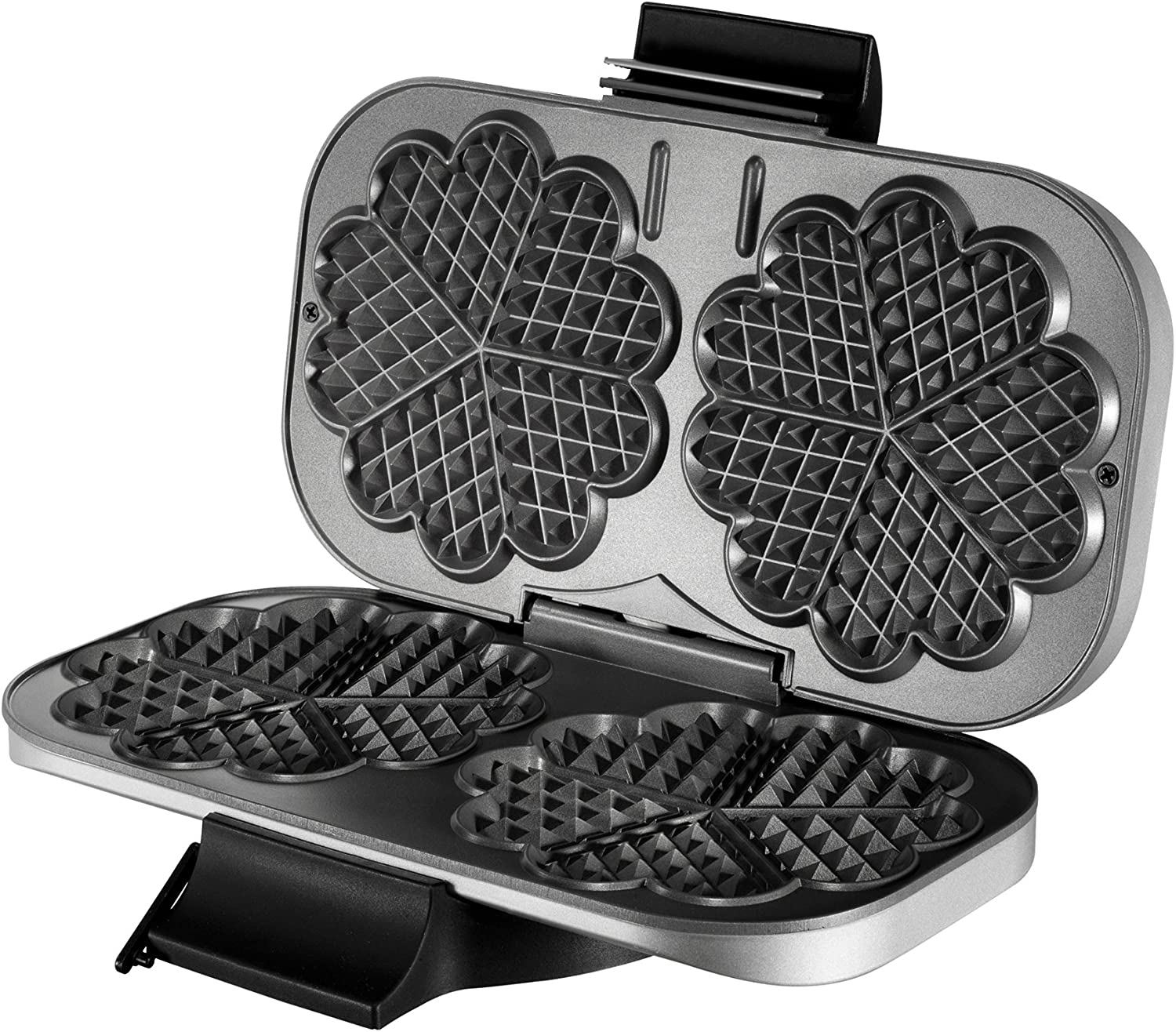 Waffelautomat für zwei Waffeln in Herzform. Stufenlose Temperatureinstellung.