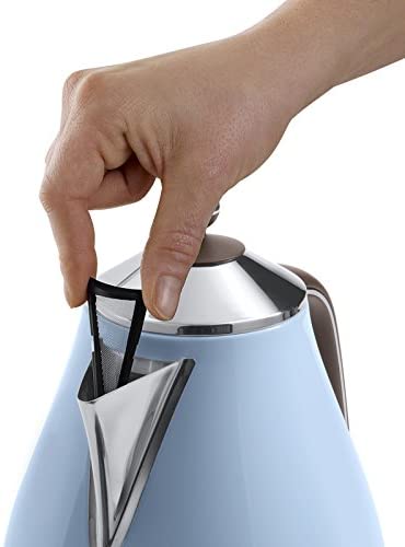 WASSERSTANDSANZEIGE Praktische Wasserstandsanzeige an der Rückseite. BASISSTATION Der kabellose Wasserkocher kann 360° auf der Basisstation gedreht werden. KALKFILTER Abnehmbarer und abwaschbarer Kalkfilter. - Elegantes Design im Retro-Look - 1.7 l Kapazität - Flaches abgedecktes Heizelement - Behälter 360° auf der Basis drehbar - Kabelloser Edelstahlbehälter - Wasserstandsanzeige - Filtereinsatz - Automatische Abschaltung, Trockengehschutz und Überhitzungsschutz - Bereitschaftsanzeige - Kabelaufwicklung - Farbe: Azur - Leistung: 2000 Watt