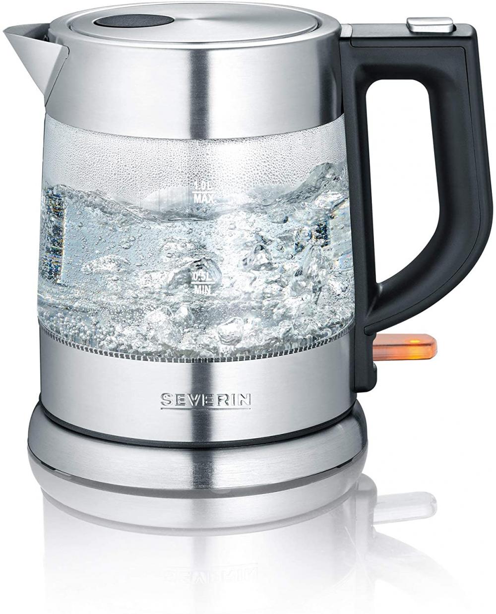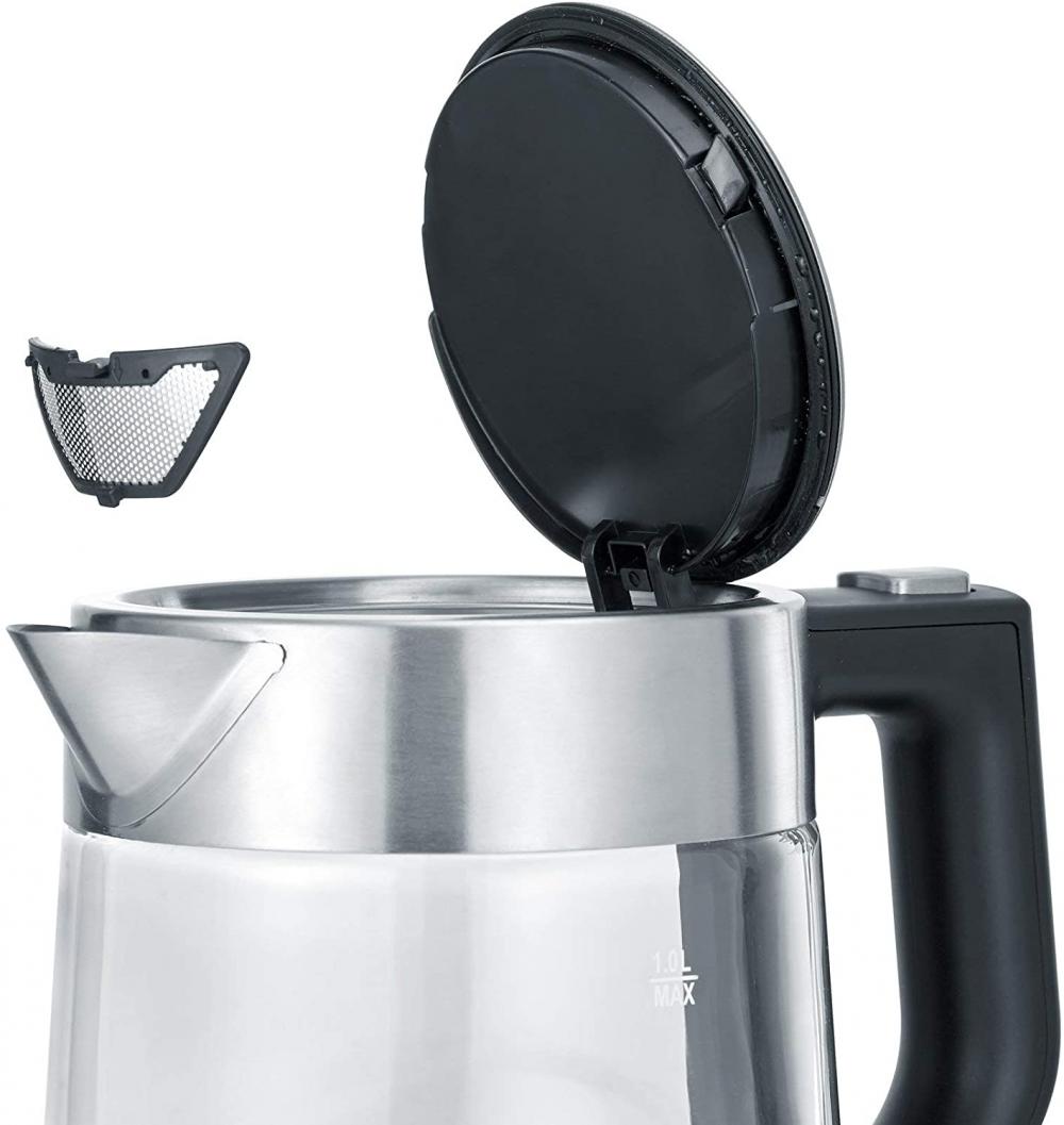 Kompakter, leistungsstarker Wasserkocher in hochwertiger Glas-Edelstahl-Kombination und 360° central-cordless system. Praktische und angenehme 1- Hand-Bedienung. Integrierter Fingerschutz am Deckel für eine sichere Bedienung. Leichte Reinigung durch klappbaren Deckel mit großer Öffnung. Herausnehmbarer, abwaschbarer Kalkfilter. Multi Media