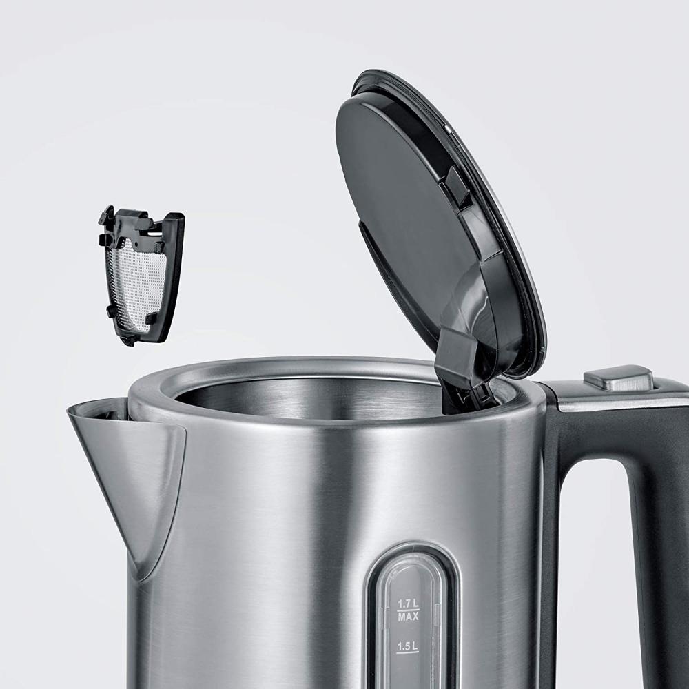 Der SEVERIN Wasserkocher besteht aus hochwertigem Edelstahl, ist zu 100% BPA frei und hat ein Fassungsvermögen von 1,7 Litern.