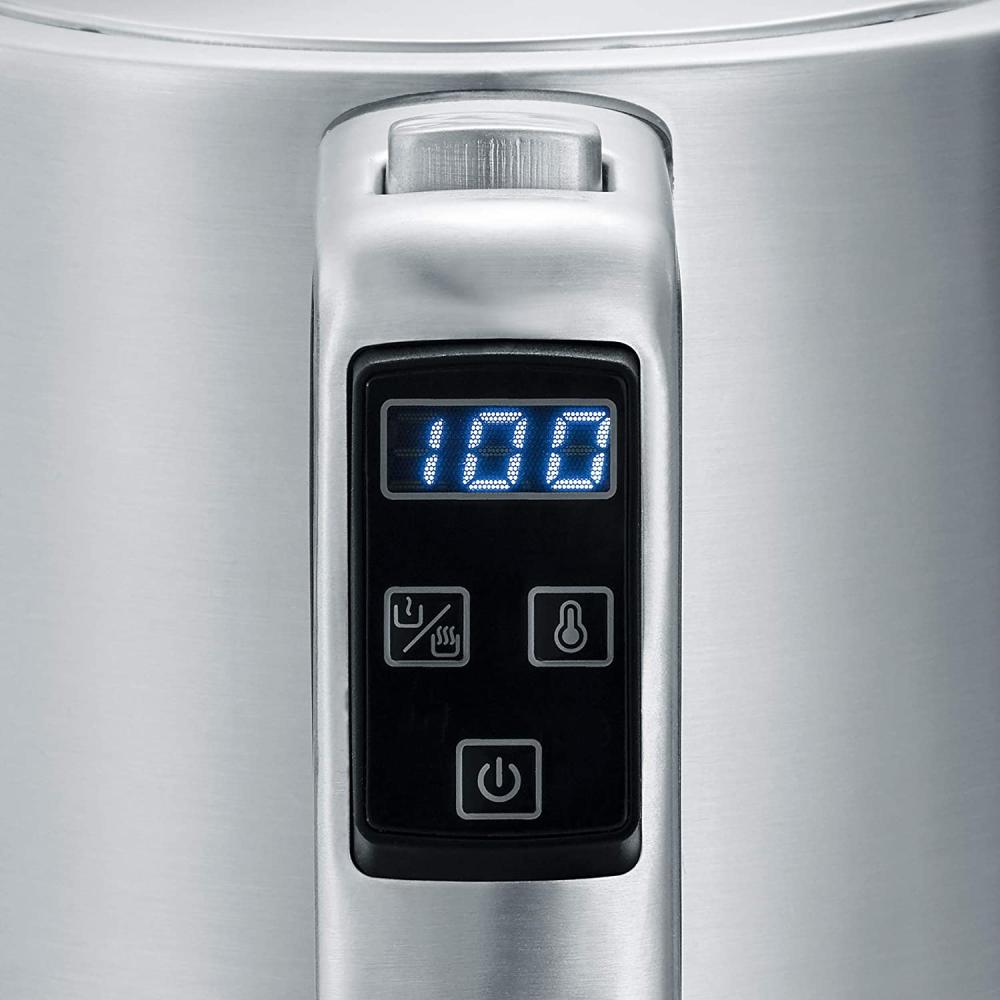 Durch die beleuchteten Wasserstandsanzeigen auf beiden Seiten ist der Kocher sowohl für Rechts- als auch für Linkshänder einfach zu bedienen.