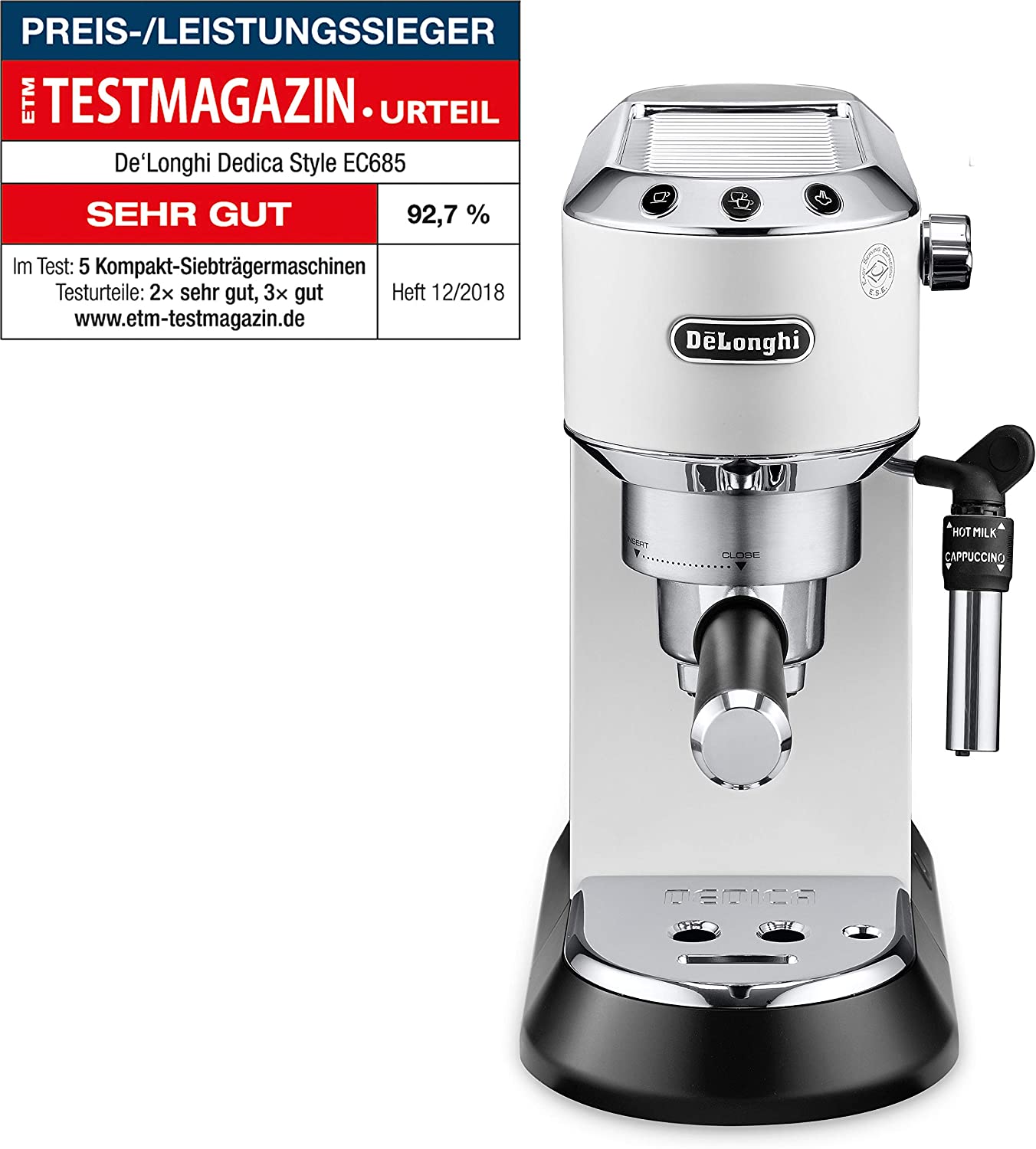 Weiterführende Links zu "De'Longhi Dedica Style EC 685.BK Espresso Siebträgermaschine, Espressomaschine mit Professioneller M"