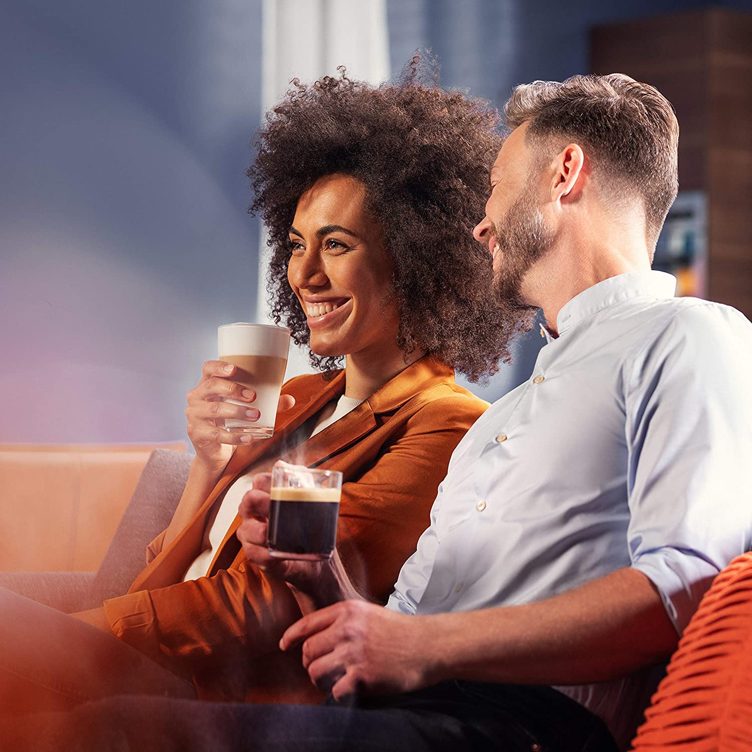 Genießen Sie dank unseres intelligenten Brühsystems den köstlichen Geschmack und das Kaffeearoma aus frischen Bohnen. Mit dem klassischen Milchaufschäumer können Sie einen samtig-cremigen Cappuccino oder Latte Macchiato ganz einfach zubereiten.