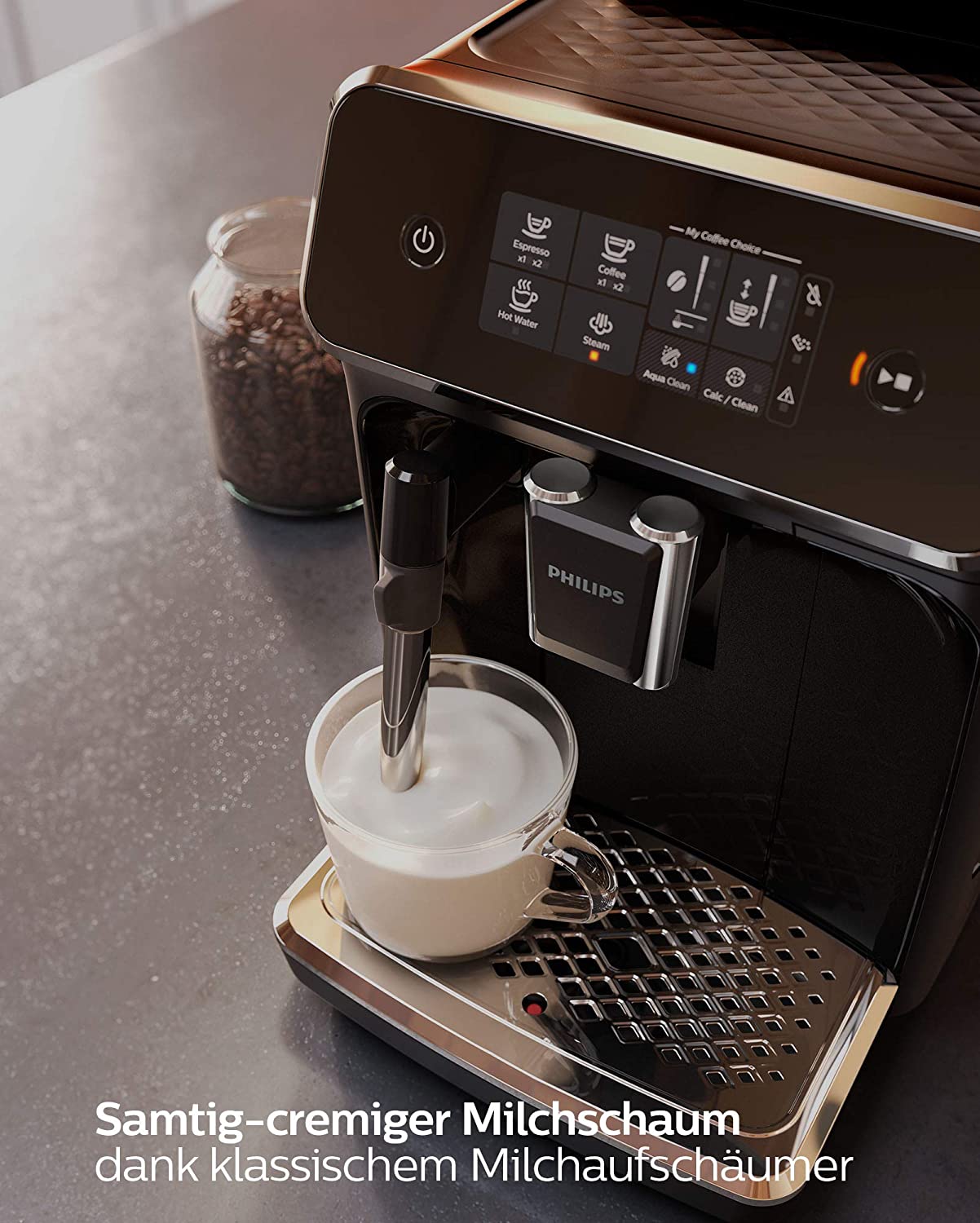 Produktinformationen "Philips 2200 Serie EP2221/40 Kaffeevollautomat, 2 Kaffeespezialitäten, Schwarz/Klavierlack-schwarz"