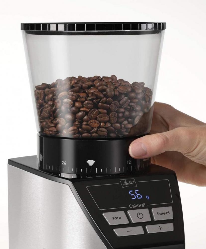 Produktinformationen "Melitta 1027-01 SST BK elektrische Kaffeemühle Calibra mit Kegelmahlwerk und LCD-Display, sowie inte"