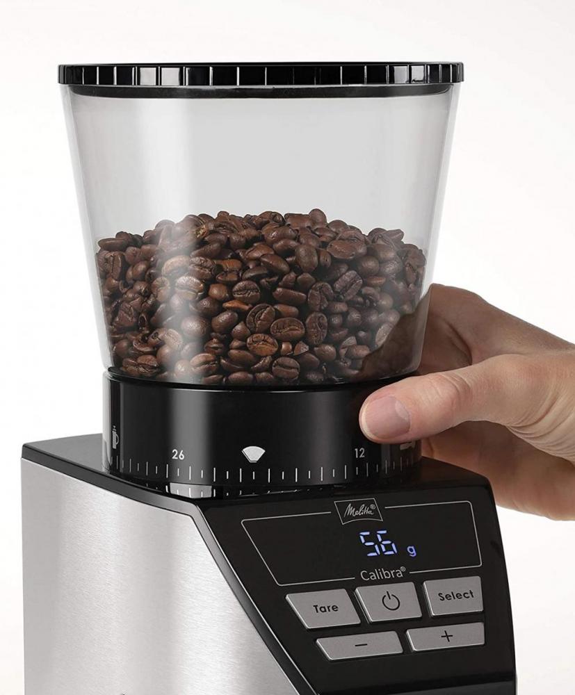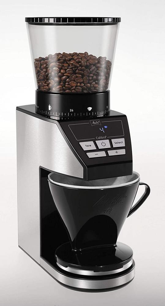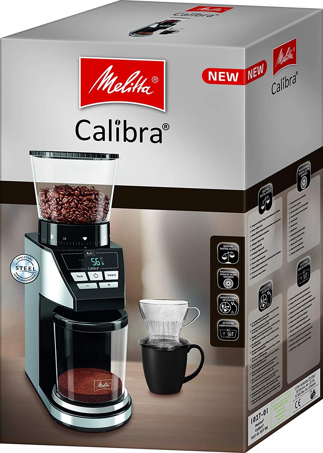 Weiterführende Links zu "Melitta 1027-01 SST BK elektrische Kaffeemühle Calibra mit Kegelmahlwerk und LCD-Display, sowie inte"